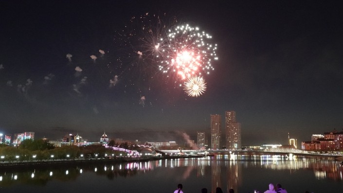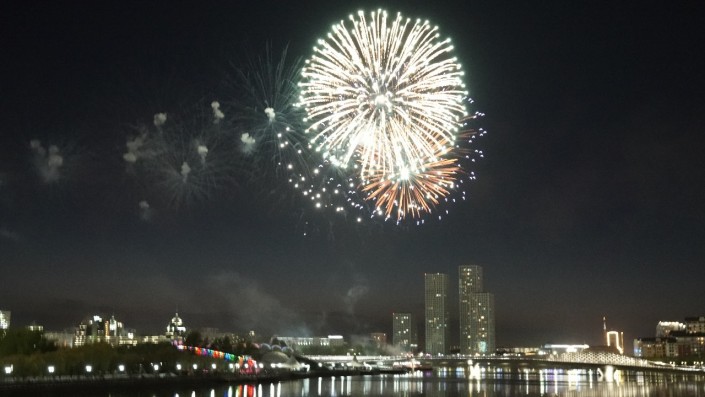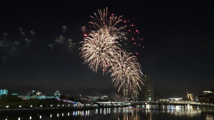 Салют можно было посмотреть с двух точек: набережная реки Есиль и Триатлон-парк.