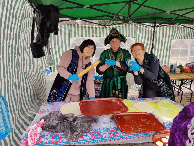 Организаторы установили казаны, где готовили традиционные казахские блюда, жарили баурсаки.