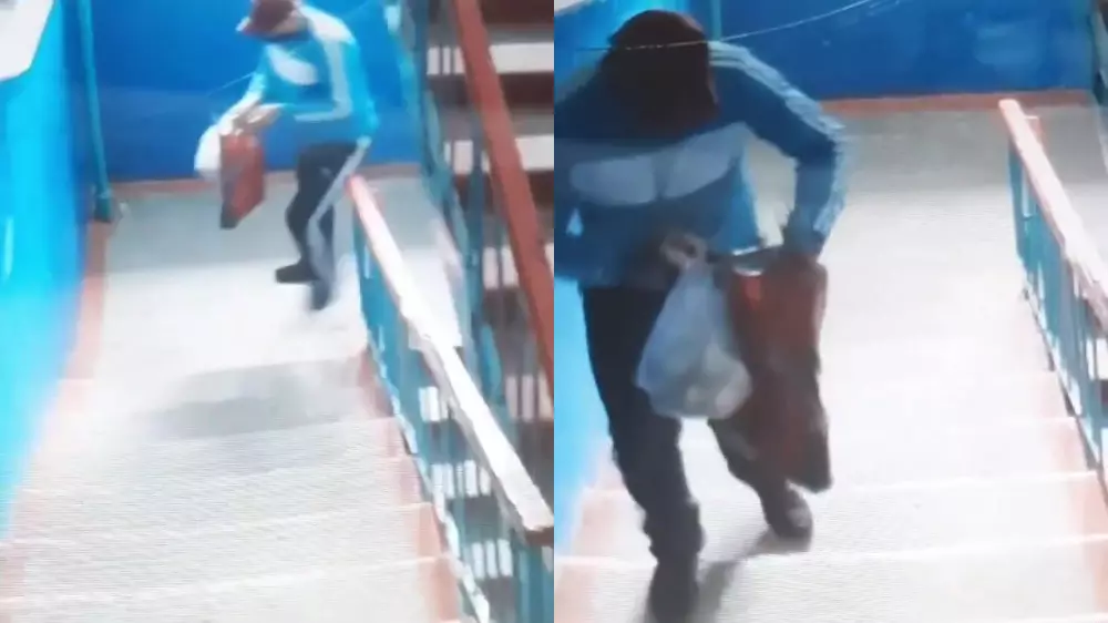 Видеозапись опубликована в социальных сетях соседями потерпевшей и вызвала резонанс. На кадрах запечатлен мужчина в спортивном костюме, который сначала спешно несет пакеты женщины и одновременно ищет в них кошелек.