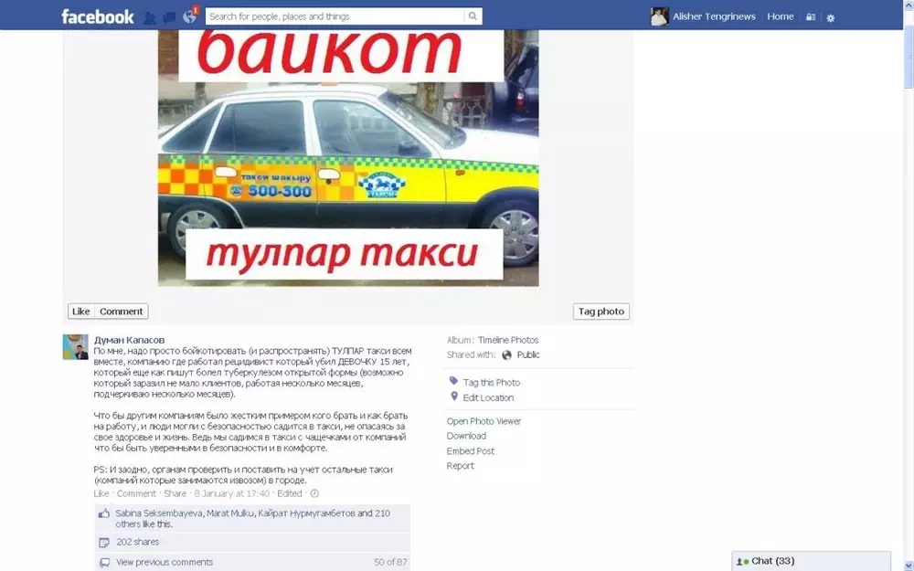 Предложения бойкота "Тулпар такси", в связи с обвинениями сотрудника этой компании в убийстве 15-летней девушки, палата предпринимателей Алматы назвала преждевременными, передает корреспондент Tengrinews.kz. Отметим, такую инициативу обсуждают пользователи социальных сетей после того, как стало известно, что водитель Виталий Атапин имел судимость.