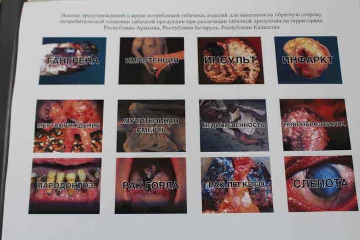 Представлены новые эскизы предупреждения о вреде курения на пачках сигарет, передает корреспондент Tengrinews.kz. Все импортеры и производители табачной продукции в Казахстане, Армении, Беларуси, Кыргызстане и России должны нанести эскизы на упаковки до 15 ноября 2017 года. Теперь они будут занимать 50 процентов площади на двух сторонах пачки.