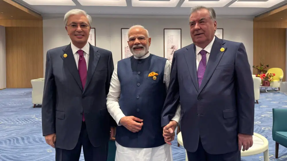 Из кулуаров саммита Шанхайской организации сотрудничества в Синьцзяне появилась фотография, на которой запечатлены Касым-Жомарт Токаев, Нарендра Моди и президент Таджикистана Эмомали Рахмон.