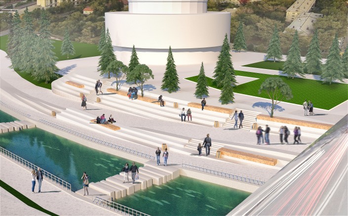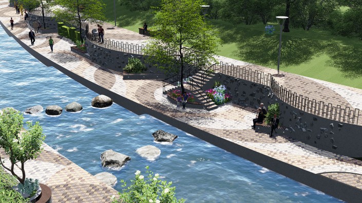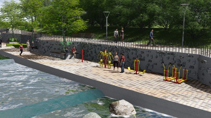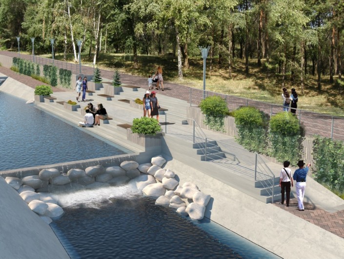 На набережной этой реки архитекторы порекомендовали выполнить благоустройство в едином стиле, чередовать активные и тихие зоны. Также нужно оставить существующее озеленение и сократить площадь твердых покрытий.