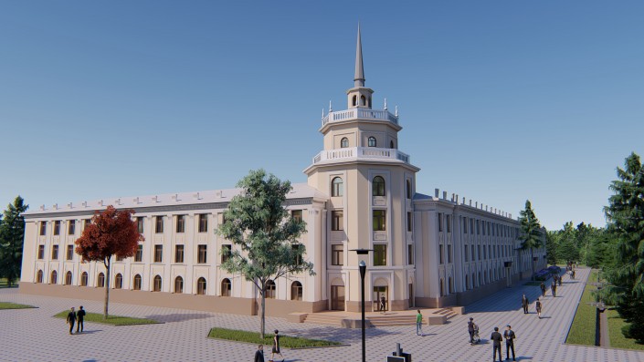 По данным экспертной группы, колористическое решение фасада здания по адресу: улица Кунаева, 51, неприемлемо, так как предлагает закраску естественного камня, которым отделано здание. В связи с этим рекомендовано сохранить существующую облицовку с восстановлением ее свойств.
