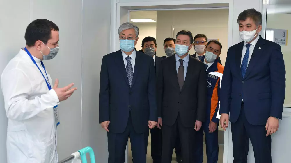Касым-Жомарт Токаев посетил столичную модульную инфекционную больницу, построенную в течение двух недель в условиях чрезвычайного положения в связи с пандемией коронавируса.