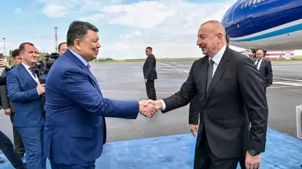 Президент Азербайджана Ильхам Алиев прибыл в Астану для участия в 24-м заседании совета глав государств - членов Шанхайской организации сотрудничества. В аэропорту его встретил заместитель премьер-министра Казахстана Канат Бозумбаев, передает Tengrinews.kz со ссылкой на официальный Telegram-канал правительства Казахстана.