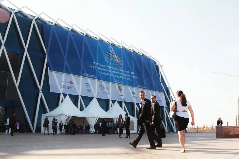 Президент Казахстана принял участие в V Астанинском экономическом форуме, передает корреспондент Tengrinews.kz из Дворца Независимости. В этом году в программе V Астанинского экономического форума (АЭФ-2012) заявлено несколько направлений: финансовый капитал и мировая экономика, индустриально-инновационное развитие, устойчивое развитие и глобальная социальная ситуация. В рамках экономического события пройдет более 50 различных мероприятий. В открытых дискуссиях примут участие бывшие и действующие главы государств, 25 действующих и бывших министров, бизнесмены, 11 нобелевских лауреатов, а также руководители международных организаций. В рамках АЭФ-2012 пройдет церемония подписания соглашений и меморандумов. К подписанию готовы 50 соглашений на сумму не менее двух миллиардов долларов. Отметим, накануне в рамках V Астанинского экономического форума в столице прошло 25-е пленарное заседание Совета иностранных инвесторов при Президенте Казахстана. На нем Нурсултан Назарбаев предложил иностранным нефтегазовым компаниям взамен права на добычу природных ресурсов развивать альтернативную экономику республики. Глава государства рассказал иностранным инвесторам о перспективах казахстанского туризма. Накануне Президент провел ряд встреч. Например, президент, председатель правления российского Сбербанка Герман Греф рассказал Главе государства о намерении банка стать одним из ключевых кредитно-финансовых учреждений в Казахстане.