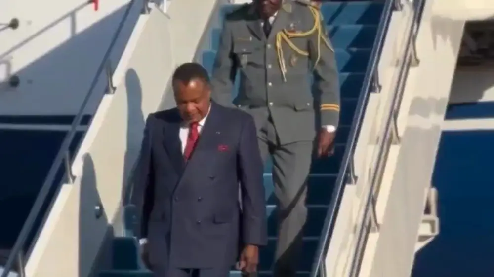 В Казахстан прибыл президент Республики Конго Денни Сассу-Нгессо. Кадрами его встречи в аэропорту Астаны поделилась Служба государственной охраны Казахстана, передает Tengrinews.kz.