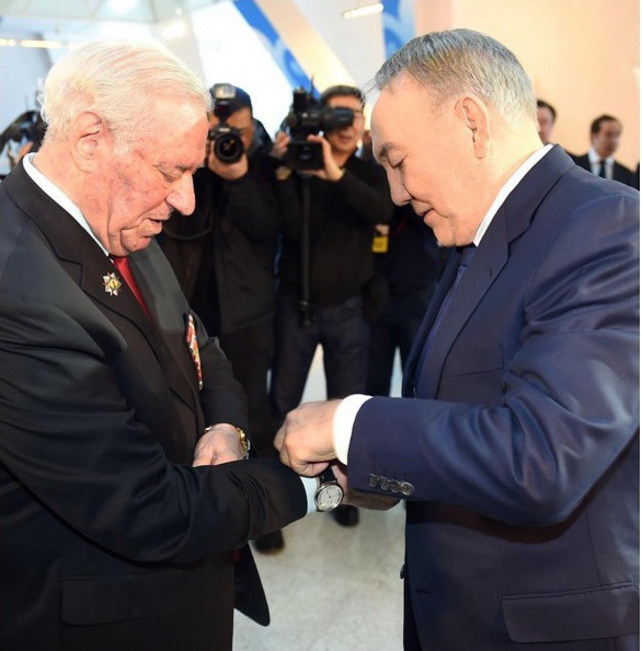 Это произошло сегодня, во время встречи Главы государства с членами Ассамблеи народа Казахстана во Дворце мира и согласия. Приветствуя участников внеочередной сессии АНК, Нурсултан Назарбаев снял со своей руки часы и надел их почетному гражданину.