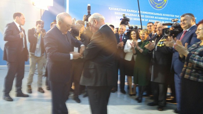После чего Глава государства продолжил разговор с делегатами внеочередной сессии. "Огромное спасибо всем членам Ассамблеи народа Казахстана. 20 лет нашей Ассамблее - уникальной организации. 20 лет спокойствия, 20 лет мира и развития Казахстана. Ассамблея от имени ста этносов делегирует девять своих депутатов, которые должны защищать интересы, такого нигде нет. (...) Я знаю, что некоторые беспокоятся, волнуются, а что будет дальше. Как наши дети, внуки будут жить. Не надо беспокоиться. Мы с вами строим эту страну, никто не будет ущемлен, не надо уезжать учиться за границу куда-то", - сказал Президент страны.