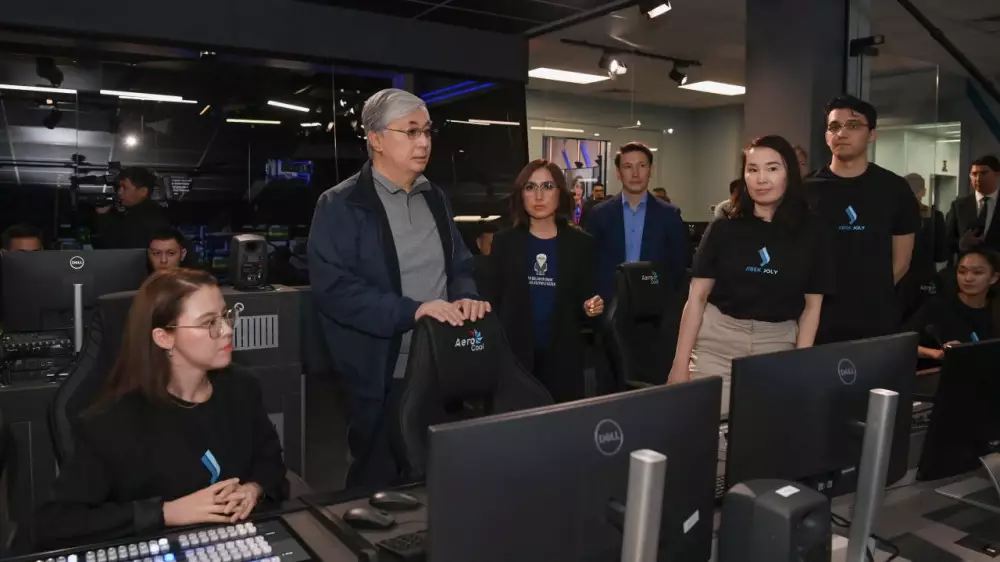 Касым-Жомарту Токаеву была представлена новая современная студия, которая отвечает всем мировым стандартам телевещания и оборудована камерами-роботами.