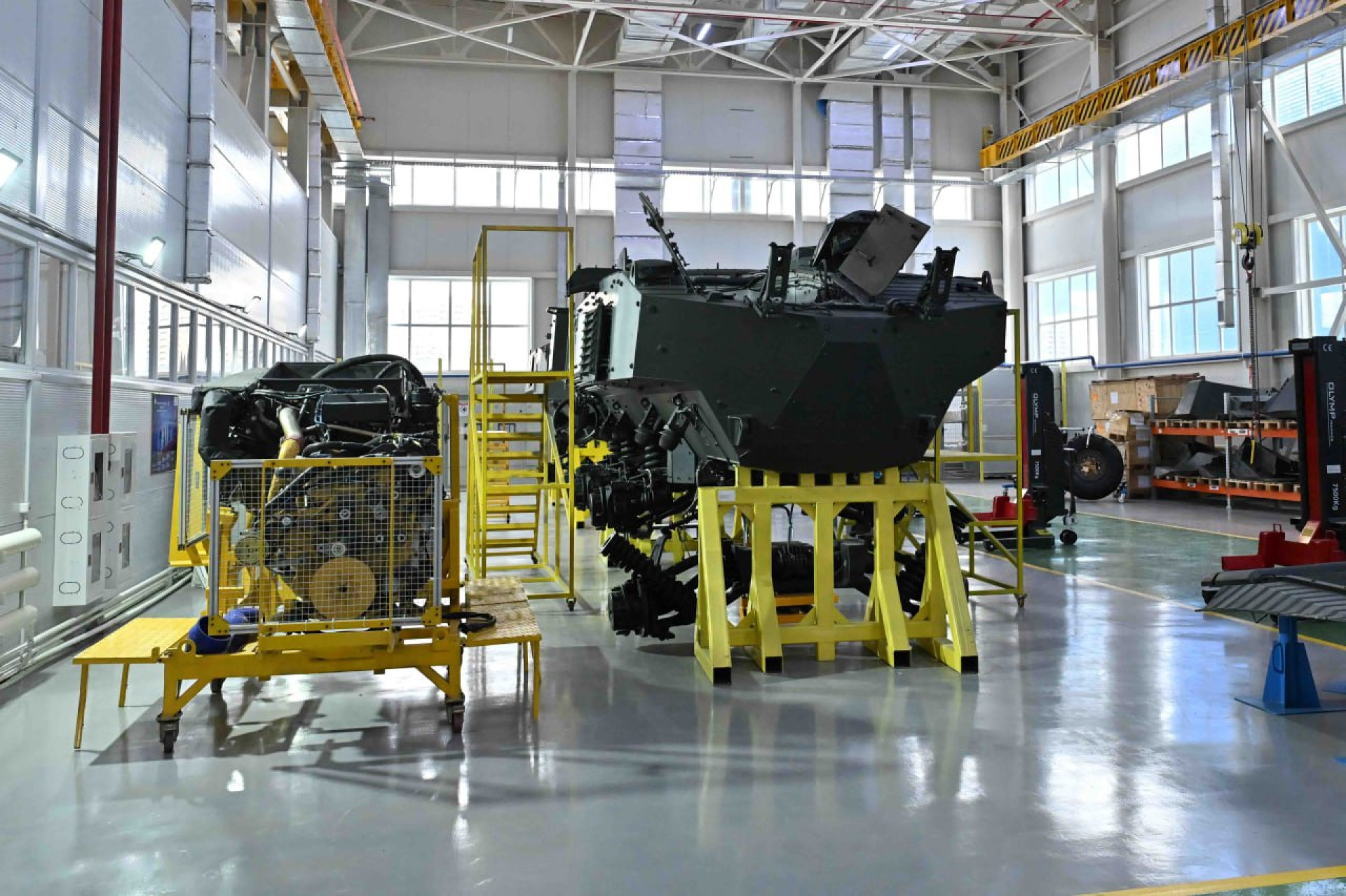 Президент также посетил завод по производству и техническому обслуживанию бронированных колесных и гусеничных машин Besqaru.