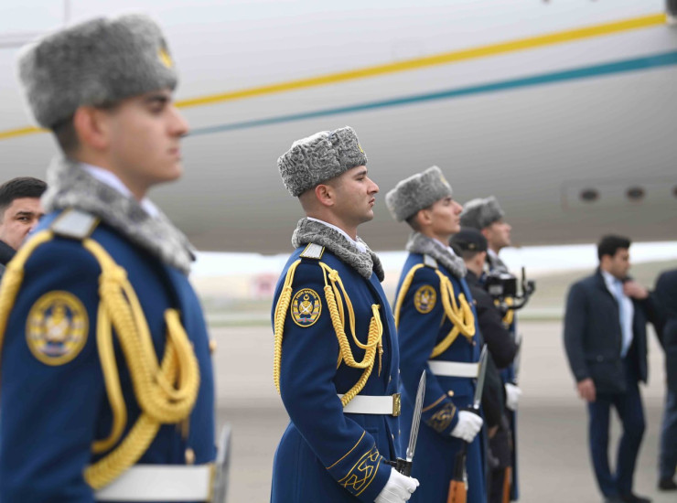 В аэропорту Касым-Жомарта Токаева встретил президент Азербайджана Ильхам Алиев. Лидеры двух стран примут участие в церемонии открытия Центра детского творчества имени Курмангазы, встретятся с местными жителями и ознакомятся с проектом строительства Физулинской городской центральной больницы.