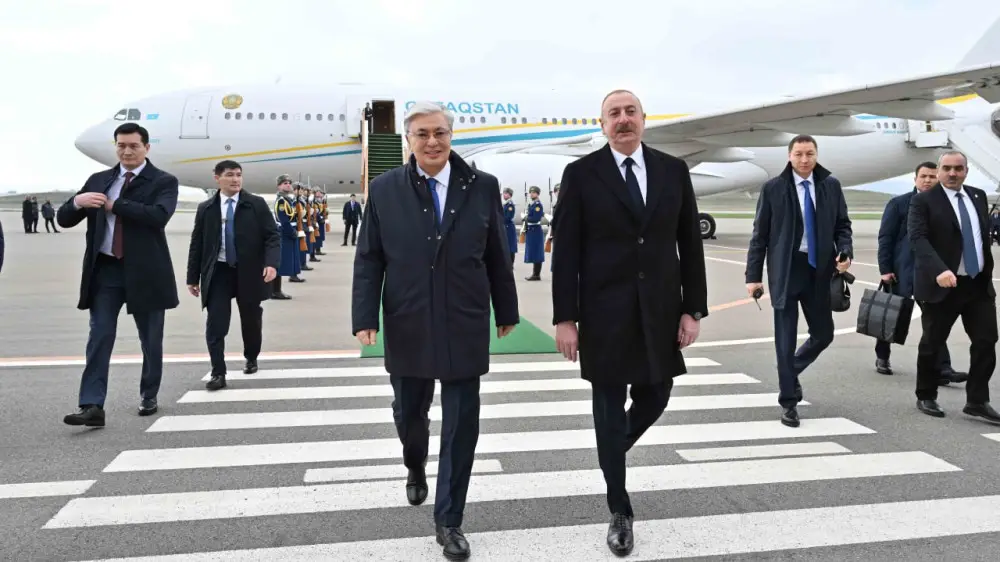 В аэропорту Касым-Жомарта Токаева встретил президент Азербайджана Ильхам Алиев. Лидеры двух стран примут участие в церемонии открытия Центра детского творчества имени Курмангазы, встретятся с местными жителями и ознакомятся с проектом строительства Физулинской городской центральной больницы.