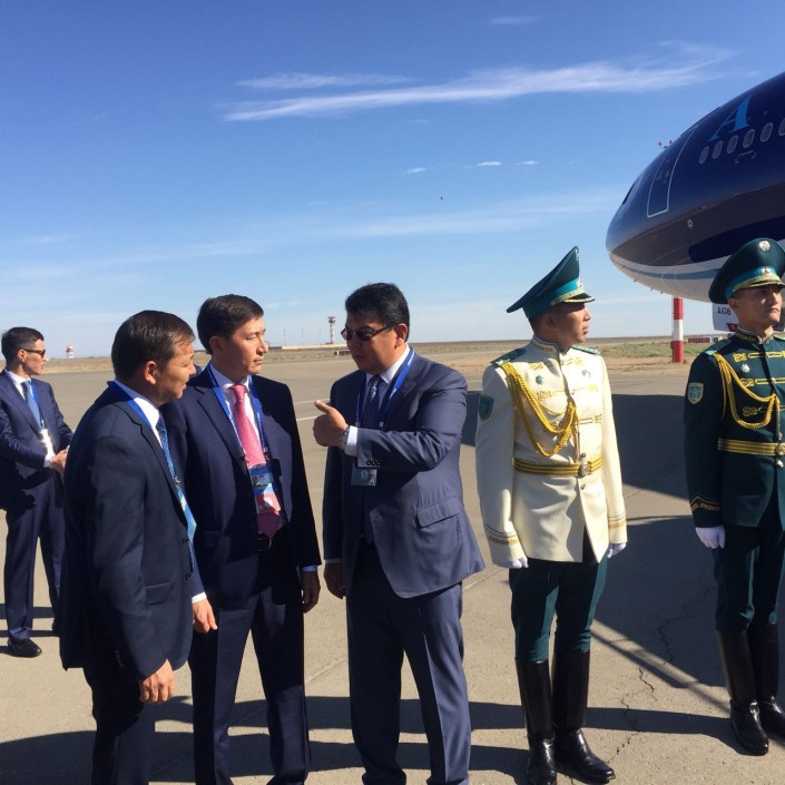 Первым в международном аэропорту приземлился самолет с лидером Азербайджана Ильхамом Алиевым. Среди встречающих высокопоставленного гостя был министр энергетики Казахстана Канат Бозумбаев.