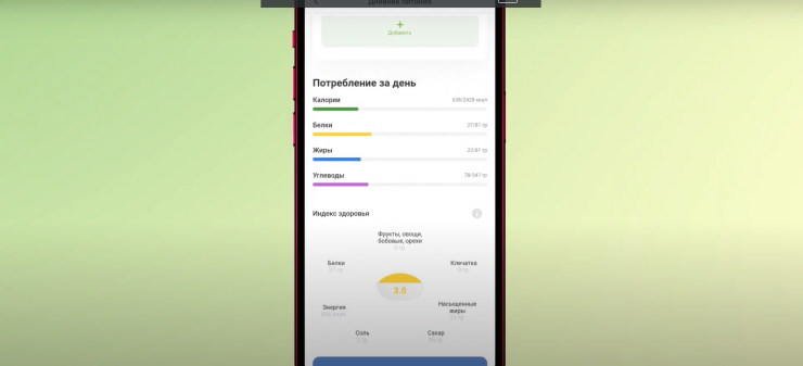 Все показатели по употребленным пользователем блюдам и продуктам формируются в индекс здоровья, который по пятибалльной шкале показывает, насколько полезным или вредным было ваше питание в ходе одного употребления пищи, в течение дня или недели.