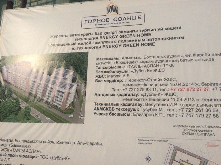 Как удалось выяснить журналистам Tengrinews.kz, речь идет о многоквартирном жилом комплексе с подземным автопаркингом по технологии Energy Green Home под названием "Горное солнце".