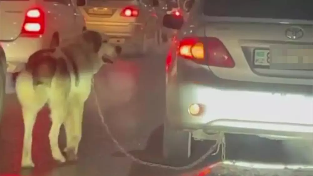 В полиции проводят проверку видео с водителем, который привязал собаку к автомобилю, передает корреспондент Tengrinews.kz.