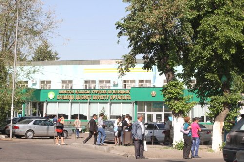 Есть небольшое здание филиала партии "Нур Отан". А рядом с ним "Казахтелеком" и Турксибский районный ЦОН.