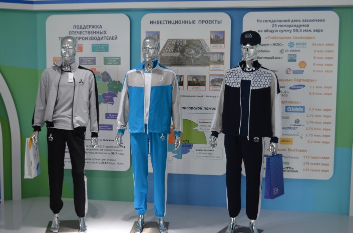 Игрушечных маскотов Сауле, Куата и Молдир представили на презентации сувенирной продукции выставки EXPO-2017. Вместе с ними в один ряд встали брендовая спортивная и повседневная одежда, подушки с казахским орнаментом, изображением маскотов и логотипа EXPO, а также всевозможные брелки, пакеты и магниты.