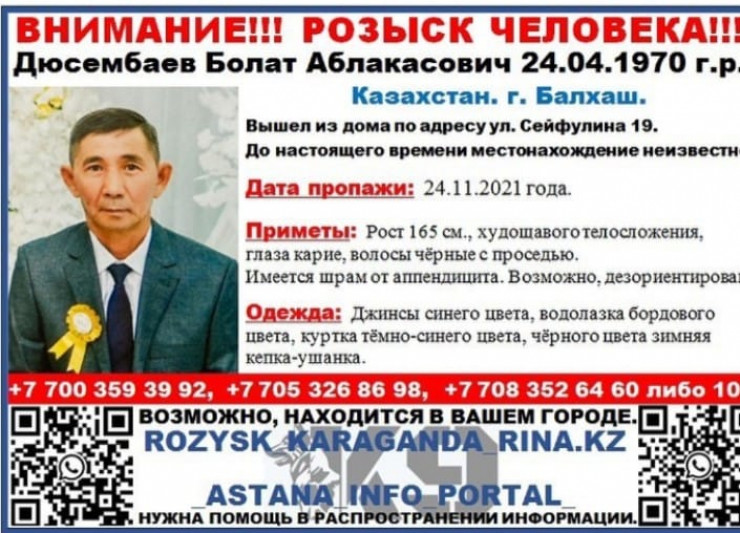 На днях в отдел полиции Балхаша поступило сообщение о трупе мужчины, найденном на берегу озера. Погибшего обнаружили случайные прохожие. После выяснения обстоятельств стало известно, что погибшим оказался пропавший 24 ноября прошлого года 51-летний Болат Дюсембаев. Родные мужчины ранее обращались в полицию с заявлением о его пропаже. Они сообщали, что мужчина ушел порыбачить и так и не вернулся.