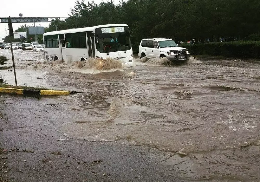 По данным "Казгидромета", общий объем выпавших осадков составил 50 миллиметров, что равносильно месячной норме. "Это классифицируется как аномальное явление, такого у нас в городе не наблюдалось на протяжении последних 30 лет. В результате чего, мы отмечаем, у нас были отдельные проблемы - подтопление дорожного полотна, а также жилых массивов в нижней части города", - отметил Оразалин.
