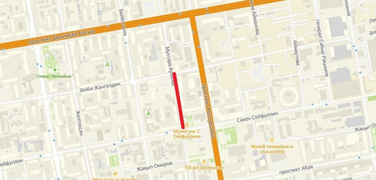 С 19 по 21 августа по улице Ауэзова будет полностью перекрыто движение для авто на участке от улицы Сейфуллина до улицы Жангельдина.