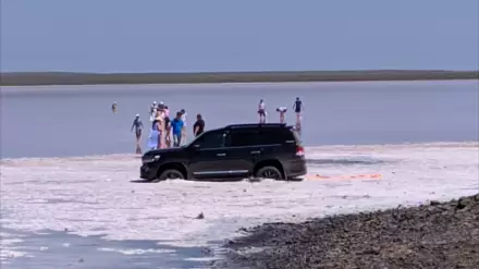 В социальных сетях распространяется фото внедорожника, заехавшего в уникальное озеро Кобейтуз в Акмолинской области. Пользователей возмутили действия водителя машины.