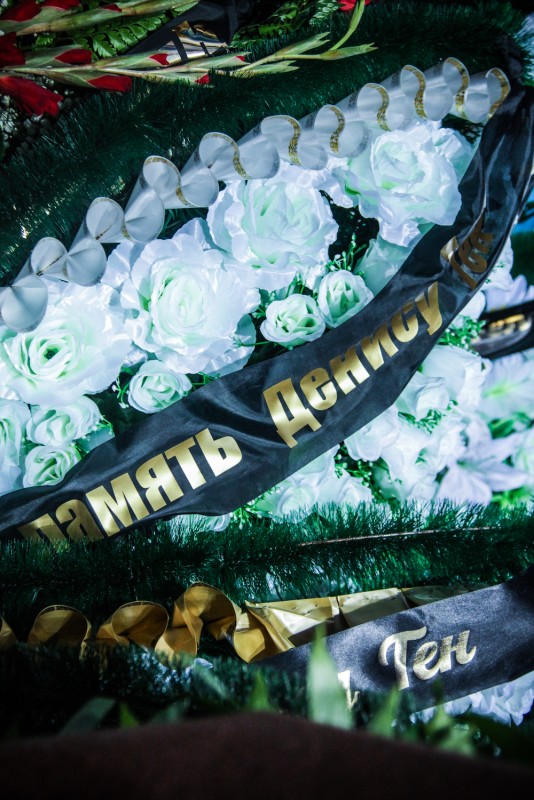 В плотной очереди некоторые плачут. Почти никто ничего не говорит. Лишь изредка слышны разговоры. Рассказывают светлые истории о Денисе, как болели за него. Вспоминают, как у них среди бела дня били стекла и воровали ценные вещи из машин, а автоворов потом так и не нашли. Обсуждают, что значит гражданское общество.