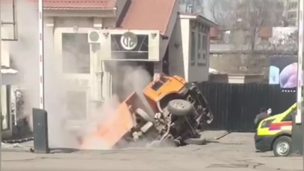 Ранее сообщалось, что грузовик провалился под землю в Алматы. Видео с места происшествия разослали очевидцы, а медики сообщили, что сотрудник частного предприятия, находившийся рядом с местом происшествия, получил травмы.