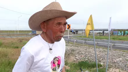 72-летний житель Улытау Сарсенбай Котырашов, решивший обойти пешком весь Казахстан, прошел уже больше 1000 километров и дошел до Шымкента, передает корреспондент Tengrinews.kz.