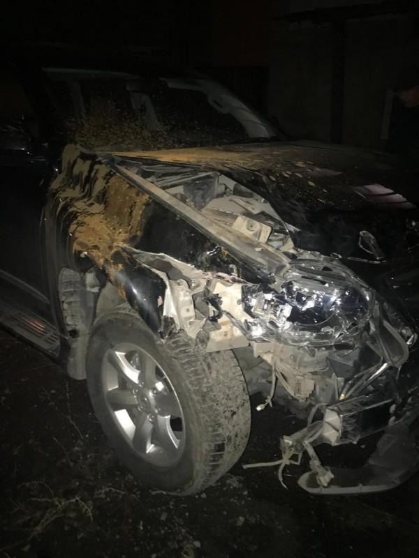 Тот самый внедорожник, который пытался угнать военнослужащий прошлой осенью. Скрываясь на машине, мужчина врезался в автобусную остановку.