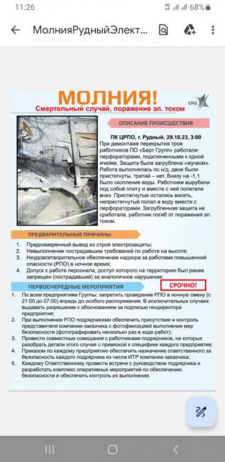 "На территории ССГПО при выполнении работ по демонтажу железобетонного перекрытия произошел несчастный случай с работником подрядной организации. Коллектив и руководство АО "ССГПО" выражают соболезнование семье погибшего. По факту случившегося проводится расследование", - говорится в сообщении.