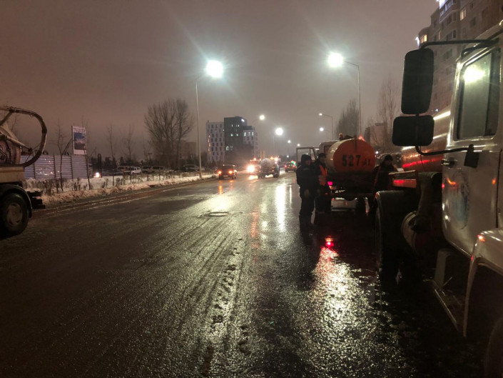 "На месте работают девять вакуумных машин и машина-илосос. В настоящее время временно прекращена подача питьевой воды в дома по улице Бокейхана, 8 и 10. Подвоз воды организован", - подытожили специалисты "Астана Су арнасы".