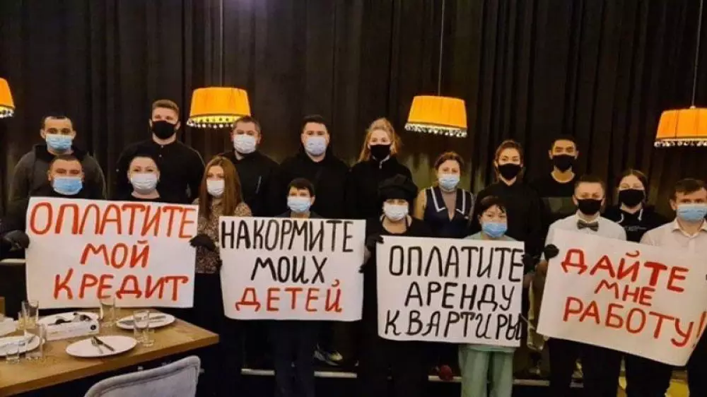 В группе zhaloby_uralsk_official в Instagram размещены фотографии, на которых работники ресторанов держат плакаты с надписями: "На что нам жить", "Оплатите мой кредит", "Дайте нам работу", "Мы хотим работать", "Мы устали выживать", "Накормите моих детей".