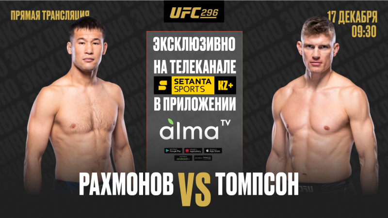 17 декабря на турнире UFC 296 в Лас-Вегасе Шавкат Рахмонов сразится против Стивена Томпсона.