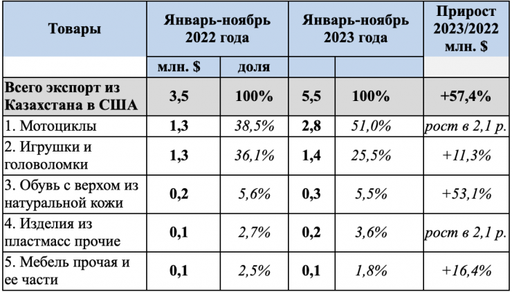 Топ-5 основных экспортных товаров из Казахстана в США: