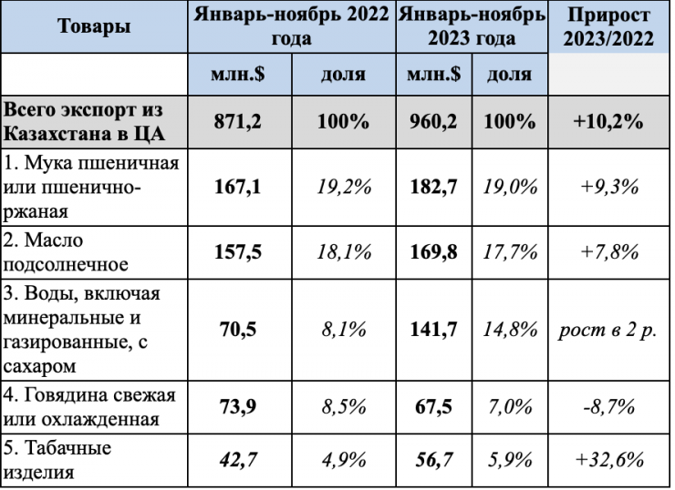 Основные товары экспорта из Казахстана в страны Центральной Азии: