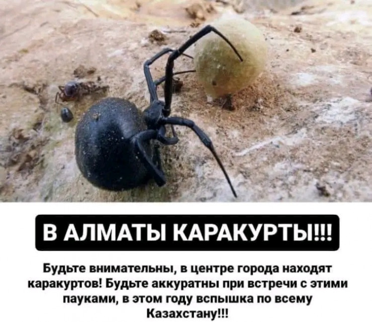 Казахстанцы распространяют в соцсетях и мессенджерах информацию о нашествии каракуртов. Согласно рассылке, данных насекомых находят в центре Алматы и вспышка якобы идет по всей стране.