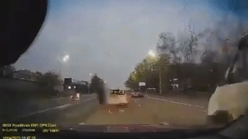 На камеру видеорегистратора попал момент наезда. На кадрах видно, что парень переходит дорогу в неположенном месте. В это время на крайней правой автобусной полосе двигается легковушка, которая, не успев затормозить, сбивает пешехода.