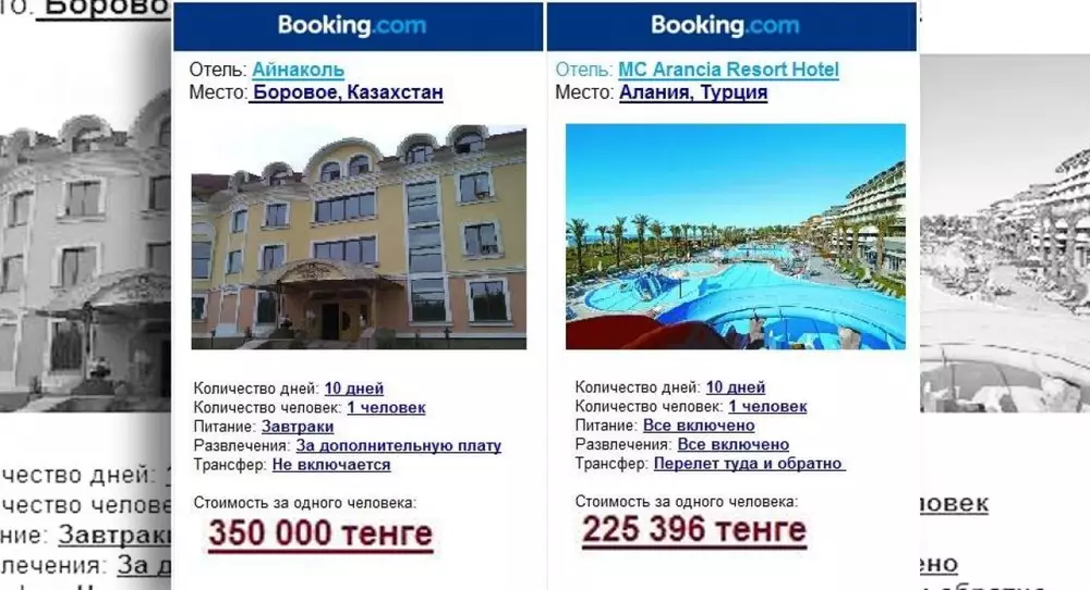 Казахстанцы в социальных сетях накануне сезона отпусков начали выкладывать сравнительную таблицу цен на отдых на курорте Алании (Турции) и в Боровом. И если казахстанцу за 10 дней отдыха в родных пенатах необходимо будет выложить 350 тысяч тенге, то отдых на заграничных берегах ему обойдется в 225 тысяч тенге.