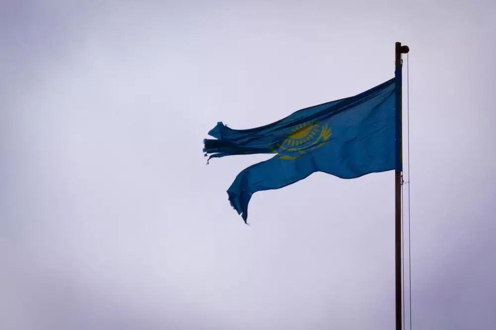 Разорванный флаг Казахстана развевается над зданием Комитета по правовой статистике и специальным учетам Генеральной прокуратуры, сообщает Tengrinews.kz.