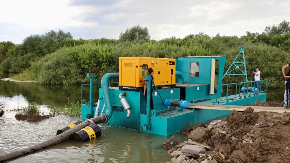 Плавучее техническое средство было доставлено в район буквально на днях. А сегодня оборудование начало работать в тестовом режиме в русле капризной реки.