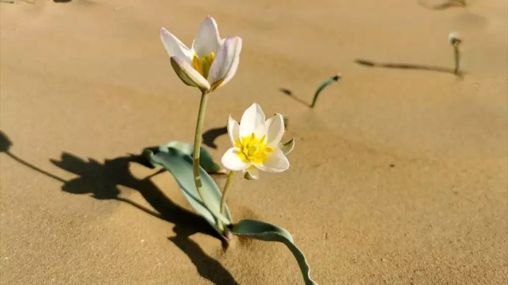 Фотографии краснокнижных цветов разместила у себя на странице пользовательница Ольга Михайлова. На кадрах показаны белые цветы посреди песков.