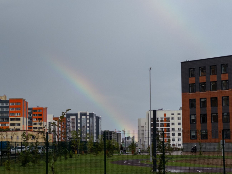 Радугу было видно достаточно отчетливо. При том, что в некоторых частях города все еще продолжал идти дождь.