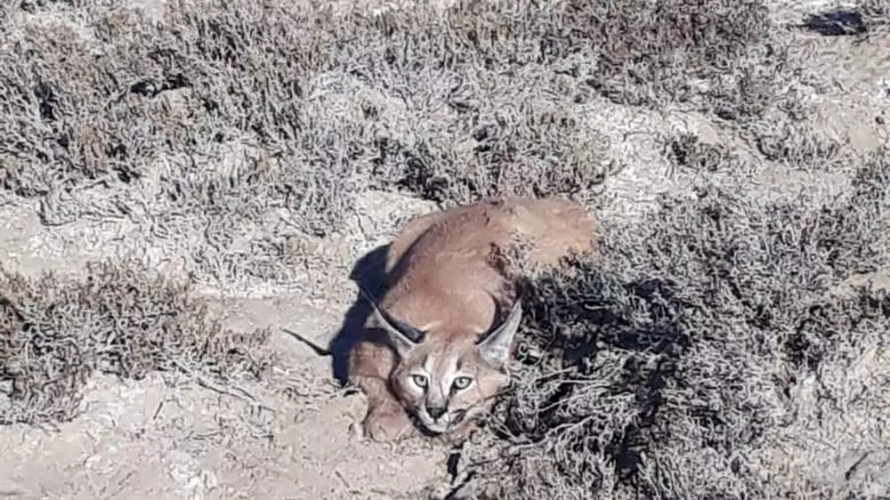 "Это хищное млекопитающее семейства кошачьих. Долгое время каракала относили к рысям, на которых он похож внешне, однако из-за ряда генетических особенностей его выделили в отдельный род. Водится в опустыненных степях. Деятелен каракал главным образом ночью, но зимой и весной появляется и днем. На территории СНГ малочислен, внесен в Красную книгу", - отметили специалисты.