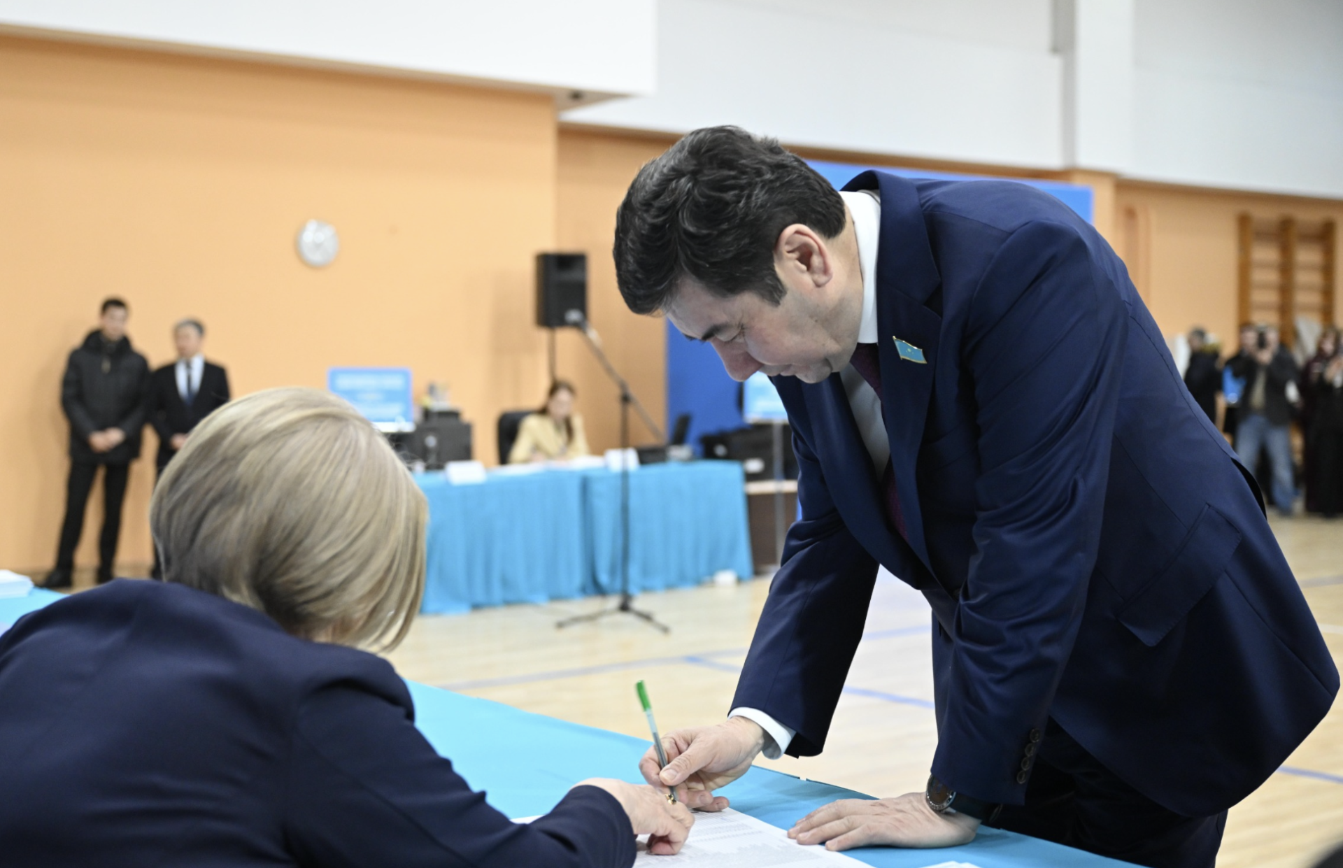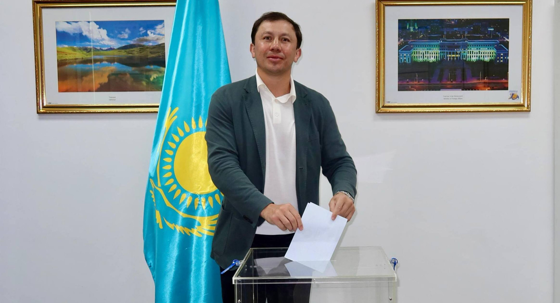 Глава МЧС Чингис Аринов сделал свой выбор. Судя по фото, на участок в Президентском центре министр пришел с отличным настроением.