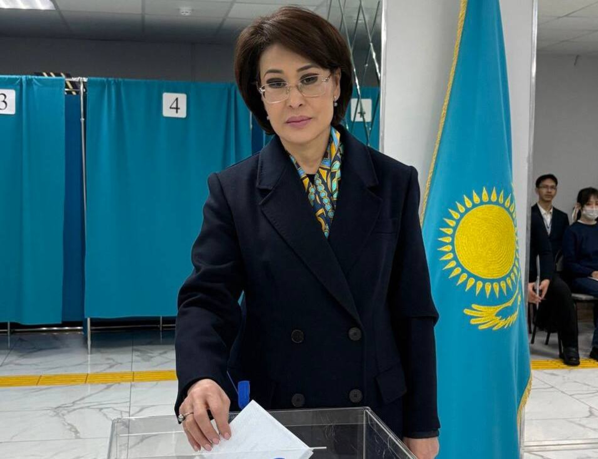 Свой гражданский долг исполнила министр здравоохранения Акмарал Альназарова.