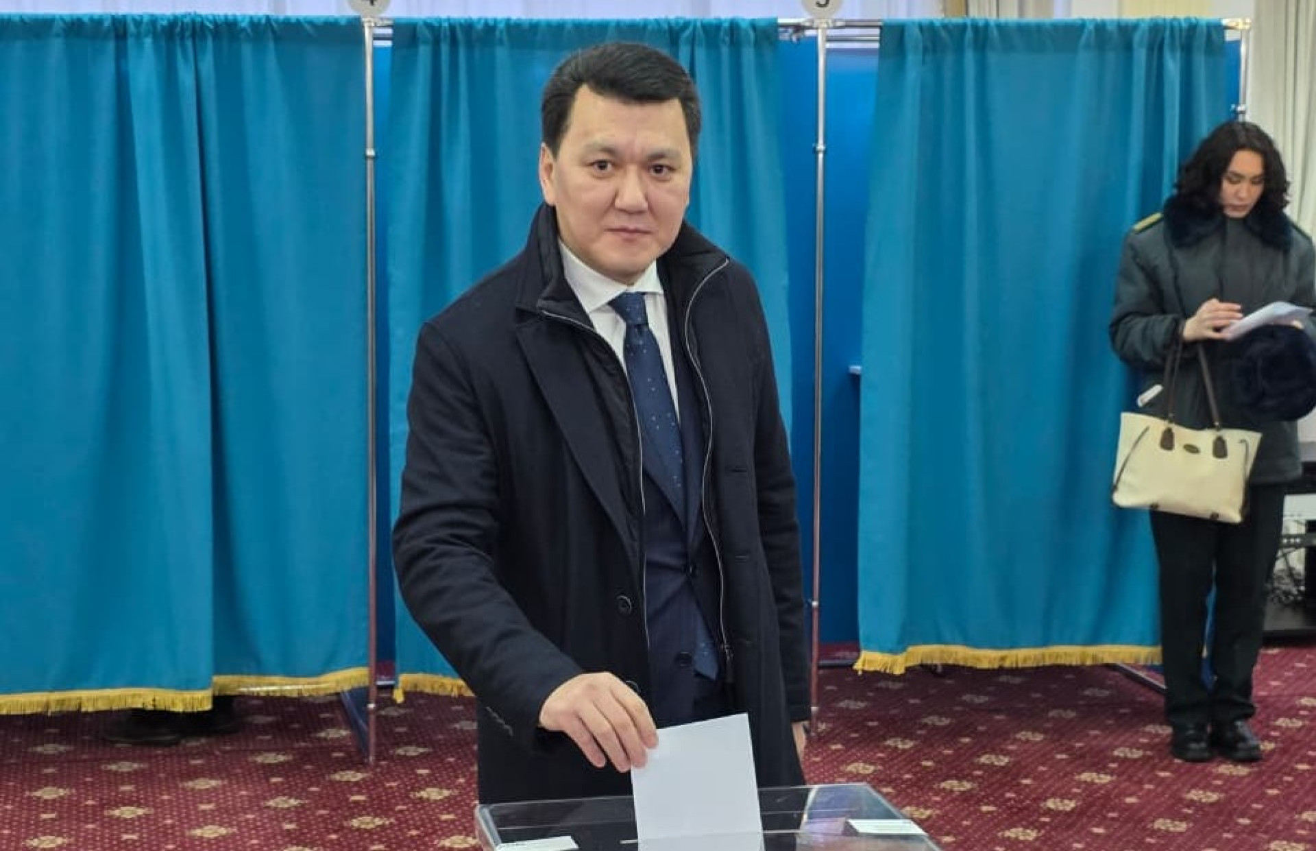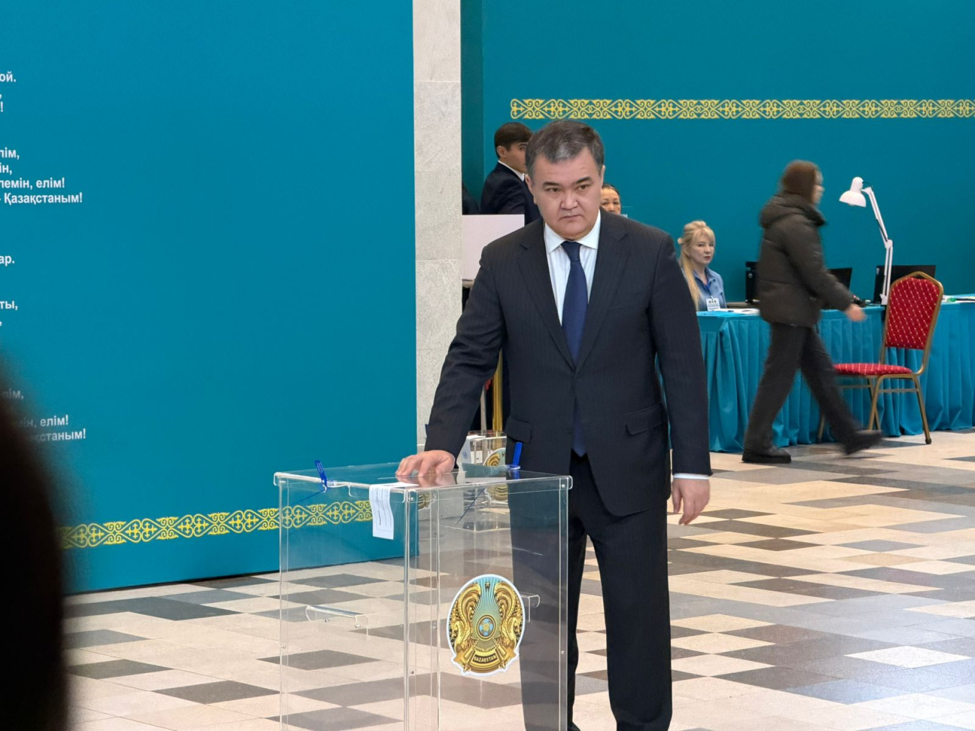 Премьер-министр Олжас Бектенов тоже уже проголосовал в Астане — в школе-лицее № 66 имени Динмухамеда Кунаева.