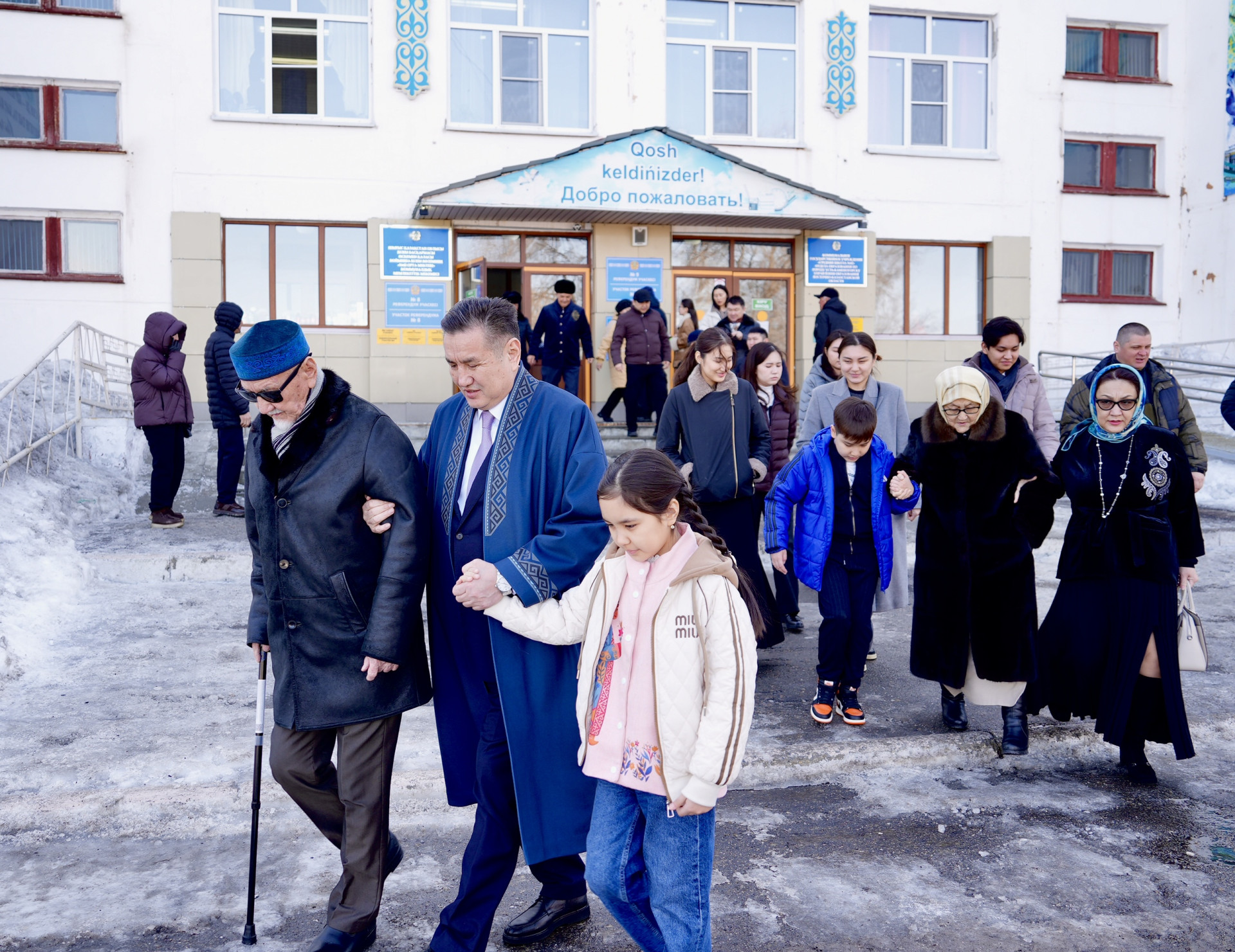 Семейное голосование в Восточном Казахстане. Аким региона Нурымбет Сактаганов пришел на участок вместе с родными.